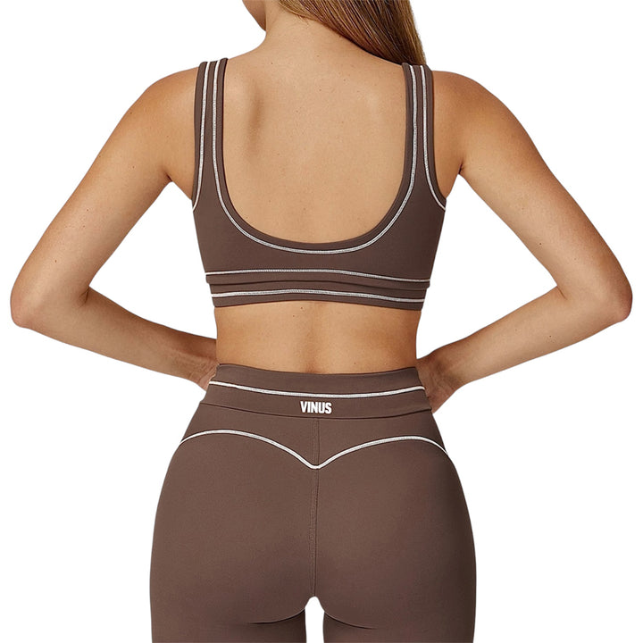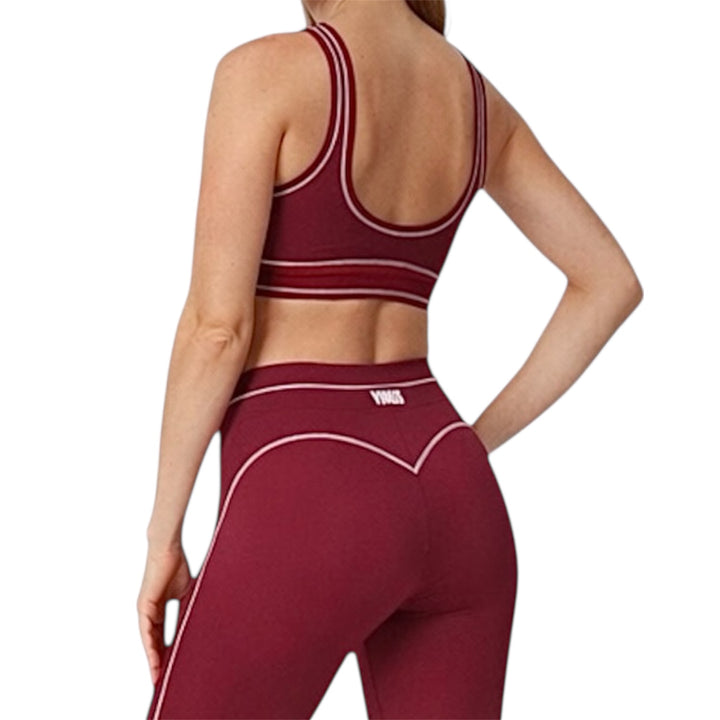 The ATHENA SET combines style and performance with a removable padded sports bra featuring elegant white stitching details. Pair it with matching leggings that showcase subtle white stitching along the back to flatter your silhouette. Designed for support and eye-catching appeal, this coordinated set keeps you comfortable through every workout. Available in four versatile shades: black, brown, wine red, and navy blue. Elevate your activewear collection with a set that delivers both function and fashion.